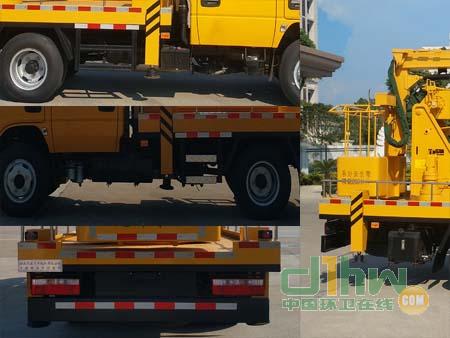 外形長/前伸/后伸(mm)對應(yīng)關(guān)系為:6860/394/0,7560/1004/90;側(cè)/后防護(hù)裝置材料材質(zhì)為Q235,側(cè)防護(hù)螺栓連接,后防護(hù)焊接,截面尺寸(寬×高)mm:50×200,離地高450mm。ABS廠家及型號:襄陽東風(fēng)隆誠機(jī)械有限責(zé)任公司/ABS/ASR-24V-4S/4M。高空作業(yè)車:該車用途為搶修電力,通訊,路燈等高空作業(yè)。主要裝置為升降平臺,作業(yè)臂。選裝左、右側(cè)工具箱,隨底盤選裝駕駛室。