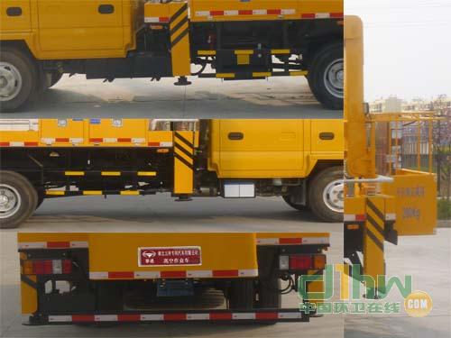 前伸:450mm,后伸800mm;側(cè)面防護(hù)及后下部防護(hù)裝置材料材質(zhì):Q235,側(cè)面防護(hù)裝置連接方式:焊接;后下部防護(hù)裝置連接方式:螺栓連接,斷面尺寸(寬×高):50×100(mm),離地高度:490mm.ABS及其控制器型號(hào)為:APG3550500A4,生產(chǎn)廠家為:浙江亞太機(jī)電股份有限公司;高空作業(yè)車:該車用途為搶修電力,通訊,路燈等高空作業(yè)。主要裝置為升降平臺(tái),作業(yè)臂。