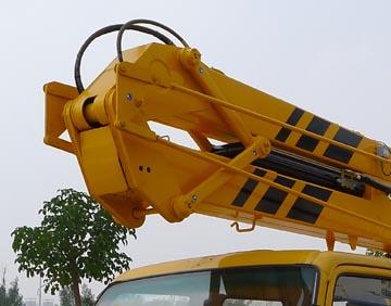 前伸340mm,后伸880mm;作業(yè)平臺(tái)為選裝,可選裝封閉式作業(yè)平臺(tái);起重裝置為選裝,選裝起重裝置時(shí)整備質(zhì)量為6440kg,不選裝起重裝置時(shí)整備質(zhì)量為6190kg。ABS及其控制器型號(hào)為:APG3550500A4,生產(chǎn)廠家為:浙江亞太機(jī)電股份有限公司。側(cè)防護(hù)材質(zhì)為6063鋁,連接方式為螺栓連接;后防護(hù)材質(zhì)為Q235鋼,斷面尺寸120mmX60mm,下緣離地高度510mm。車輛最后部為作業(yè)平臺(tái)。