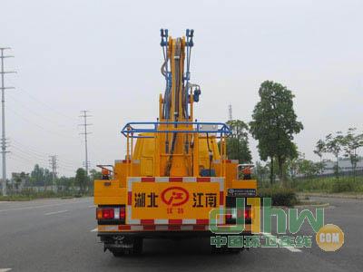 前伸:110,后伸:670mm;隨底盤選裝駕駛室;吊鉤為選裝件;側(cè)面防護(hù)及后下部防護(hù)裝置材料材質(zhì):Q235,連接方式:焊接加螺栓連接;后下部防護(hù)裝置斷面尺寸(寬×高):30×200(mm),離地高度:380mm;ABS系統(tǒng)型號(hào):APG3550500A,ABS系統(tǒng)生產(chǎn)廠家:浙江亞太機(jī)電股份有限公司;主要專用裝置為折疊臂,用于搶修電力、通訊、路燈等高空作業(yè).