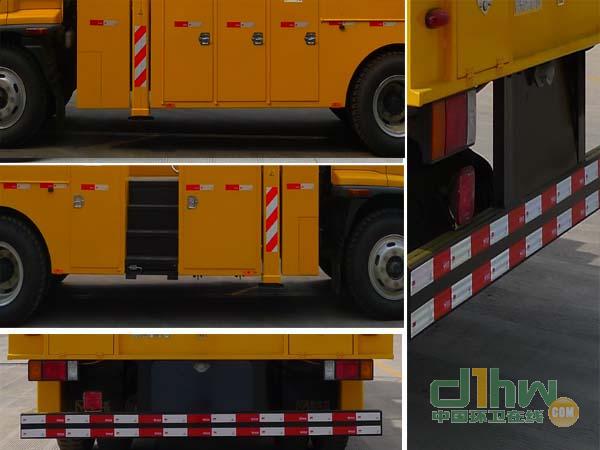 后伸290mm.選裝A型支腿上裝.選裝左側(cè)支腿前擋板.隨底盤選裝窄前保險(xiǎn)杠.ABS及控制器型號為:APG3550500H1,生產(chǎn)廠家為:浙江亞太機(jī)電股份有限公司.側(cè)防護(hù)為裙板式結(jié)構(gòu),材料Q235鋼,采用焊接連接;后防護(hù)材質(zhì)為Q235鋼,斷面尺寸150mmX60mm,下緣離地高度500mm.