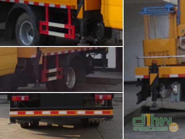 前伸:735mm,后伸:330mm;隨底盤選裝駕駛室;吊鉤為選裝件;側面防護及后下部防護裝置材料材質(zhì):Q235,連接方式:焊接加螺栓連接;后下部防護裝置斷面尺寸(寬×高):30×200(mm),離地高度:480mm;ABS控制器型號及生產(chǎn)企業(yè):CM4XL-4S/4M,廣州科密汽車電子控制技術股份有限公司.