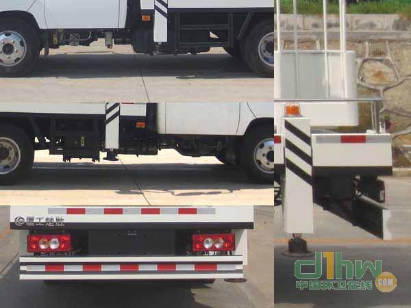 前伸:925mm。側(cè),后防護材料均為冷彎型鋼Q235,側(cè)防護螺栓連接;后防護焊接,截面尺寸(寬×高)mm:50×180,離地高450mm。ABS系統(tǒng)型號/生產(chǎn)企業(yè):44600XXXX0/威伯科汽車控制系統(tǒng)(中國)有限公司。左、右兩側(cè)選裝工具箱。