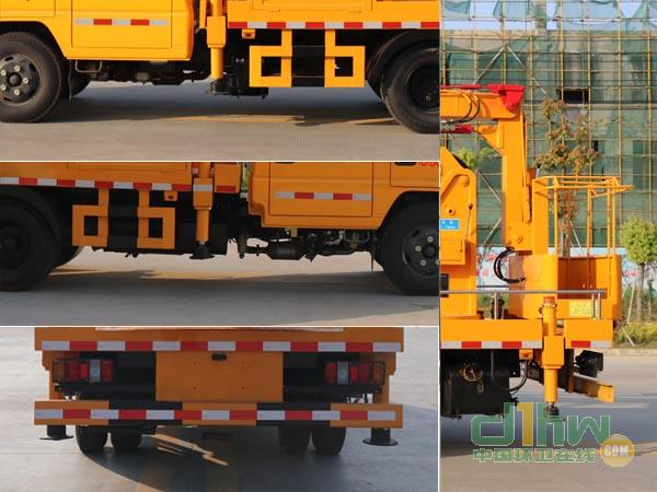 隨底盤選裝駕駛室;外形長/前伸/后懸/后伸對應(yīng)關(guān)系為(mm):6850/445/1980/0,7690/900/1980/385;側(cè)防護及后防護裝置材料均采用冷彎型鋼/Q235;側(cè)防護焊接;后防護焊接,截面尺寸(寬×高)mm:50×120,離地高450mm.ABS控制器廠家/型號:浙江亞太機電股份有限公司/APG3550500A.該車主要用于搶修電力,通訊,路燈等高空作業(yè),專用裝置為升降平臺和作業(yè)臂.