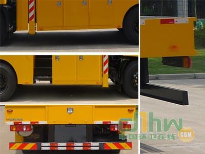后伸115mm.隨底盤選裝前霧燈,選裝駕駛室.僅采用4500mm軸距底盤.本車型專用功能為通過(guò)臂架折疊伸縮,轉(zhuǎn)臺(tái)回轉(zhuǎn),將工作平臺(tái)舉升至作業(yè)位置.專用裝置主要包括臂架,轉(zhuǎn)臺(tái),工作平臺(tái),支腿等.ABS型號(hào):3631010-C2000,4460046440;生產(chǎn)廠家:東科克諾爾商用車制動(dòng)系統(tǒng)(十堰)有限公司,威伯科汽車控制系統(tǒng)(中國(guó))有限公司.側(cè)防護(hù)為裙板式結(jié)構(gòu),材料Q235鋼,采用焊接連接,后防護(hù)與副車架采用螺栓連接,材質(zhì)為Q235鋼,斷面尺寸150mm×60mm,下緣離地高度500mm.
