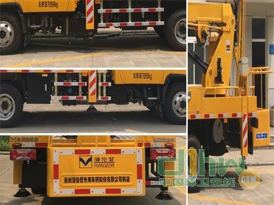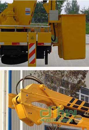 前伸:242mm;后伸:860mm.不選裝起重裝置時(shí),整備質(zhì)量為6400kg.選裝封閉式作業(yè)平臺(tái).本車型專用功能為通過(guò)臂架折疊,轉(zhuǎn)臺(tái)回轉(zhuǎn),將工作平臺(tái)舉升至作業(yè)位置.專用裝置主要包括臂架,轉(zhuǎn)臺(tái),工作平臺(tái),支腿等.ABS型號(hào):APG3550500A6,VIE ABS-II,ABS生產(chǎn)企業(yè):浙江亞太機(jī)電股份有限公司,浙江萬(wàn)安科技股份有限公司.側(cè)防護(hù)材質(zhì)為6063鋁,連接方式為螺栓連接,車輛后下部為作業(yè)平臺(tái).