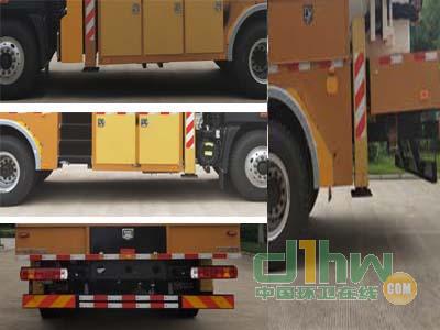后伸:265mm。僅選用4500mm軸距。隨底盤可不選裝霧燈。該車型裝備有支腿,轉(zhuǎn)臺,臂架,工作平臺等部件的高空作業(yè)裝置,可將作業(yè)人員與工具送到指定高度位置進行作業(yè)。ABS系統(tǒng)型號/生產(chǎn)企業(yè)對應(yīng)關(guān)系:44600XXXX0/威伯科汽車控制系統(tǒng)(中國)有限公司.側(cè)防護為裙板式結(jié)構(gòu),后防護材料Q235鋼,斷面尺寸150mmX60mm,下緣離地高度500mm。