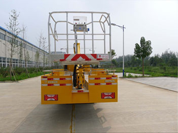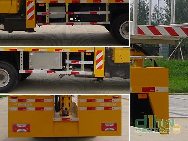 后伸:485mm。選裝封閉式作業(yè)平臺(tái)。選裝右側(cè)防護(hù)后部造型。本車型專用功能為通過臂架伸縮,轉(zhuǎn)臺(tái)回轉(zhuǎn),將工作平臺(tái)舉升至作業(yè)位置。專用裝置主要包括臂架,轉(zhuǎn)臺(tái),工作平臺(tái),支腿等。ABS型號(hào):APG3550500A6,VIE ABS-II,ABS生產(chǎn)企業(yè):浙江亞太機(jī)電股份有限公司,浙江萬安科技股份有限公司。側(cè)防護(hù)材質(zhì)為6063鋁,連接方式為螺栓連接;后下部防護(hù)采用裙板式結(jié)構(gòu),材質(zhì)為Q235鋼,下緣離地高度450mm。