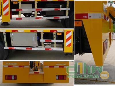 后伸:493mm;選裝封閉式作業(yè)平臺(tái)。選裝右側(cè)防護(hù)后部造型。本車型專用功能為通過(guò)臂架伸縮,轉(zhuǎn)臺(tái)回轉(zhuǎn),將工作平臺(tái)舉升至作業(yè)位置。專用裝置主要包括臂架,轉(zhuǎn)臺(tái),工作平臺(tái),支腿等。ABS及其控制器型號(hào)為:APG3550500A4,生產(chǎn)廠家為:浙江亞太機(jī)電股份有限公司。側(cè)防護(hù)材質(zhì)為6063鋁,連接方式為螺栓連接,后下部防護(hù)裝置為裙板式結(jié)構(gòu)。