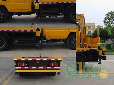 前伸200mm。側/后防護裝置材料材質為Q235,側防護焊接連接,后防護焊接,截面尺寸(寬×高)mm:50×200,離地高450mm。ABS系統(tǒng)型號:APG3550500A,ABS系統(tǒng)生產廠家:浙江亞太機電股份有限公司。高空作業(yè)車:該車用途為搶修電力,通訊,路燈等高空作業(yè)。主要裝置為升降平臺,作業(yè)臂。