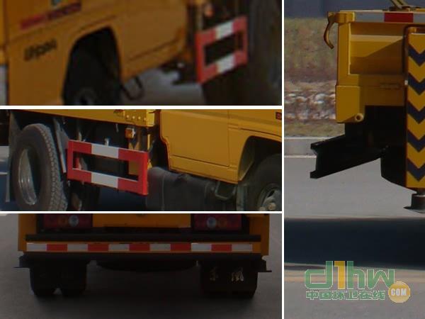 隨底盤(pán)選裝駕駛室;吊鉤為選裝件;前伸770mm,后伸400mm;側(cè)面防護(hù)及后下部防護(hù)裝置材料材質(zhì):Q235,連接方式:焊接加螺栓連接;后下部防護(hù)裝置斷面尺寸(寬×高):30×200(mm),離地高度:430mm.ABS系統(tǒng)型號(hào):APG3550500A,ABS系統(tǒng)生產(chǎn)廠家:浙江亞太機(jī)電股份有限公司.