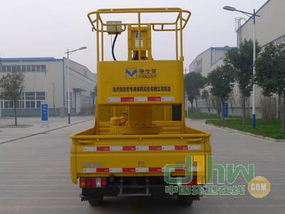 后伸:140mm;選裝封閉式作業(yè)平臺(tái)。選裝不同結(jié)構(gòu)形式回轉(zhuǎn)支承。該車型裝備有支腿,轉(zhuǎn)臺(tái),臂架,工作平臺(tái)等部件的高空作業(yè)裝置,可將作業(yè)人員與工具送到指定高度位置進(jìn)行作業(yè)。該車裝ABS,ABS及其控制器型號(hào)為:APG3550500A4,生產(chǎn)廠家為:浙江亞太機(jī)電股份有限公司。側(cè)防護(hù)材料:鋼板 Q235,連接方式:用螺栓連接在車箱橫梁上;后防護(hù)材料:鋼板Q235,板厚4.0mm,連接方式:后防護(hù)支架以螺栓連接在車架縱梁尾端,后防護(hù)斷面尺寸:133×24(mm),離地高度:470mm。