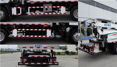 該車具有后伸為555mm.該車隨底盤安裝ABS,ABS及其控制器型號(hào)為:APG3550500A4,生產(chǎn)廠家為:浙江亞太機(jī)電股份有限公司.該車可隨底盤裝氣壓制動(dòng)系統(tǒng),裝氣壓制動(dòng)系統(tǒng)時(shí),ABS系統(tǒng)型號(hào):CM4XL-4S/4M,ABS系統(tǒng)生產(chǎn)廠家:廣州瑞立科密汽車電子股份有限公司.側(cè),后防護(hù)材料為Q235,連接方式為螺栓連接,后部防護(hù)裝置的截面尺寸為140mm×50mm,下緣離地高度為460mm.