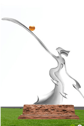 不銹鋼雕塑——紡織女。設(shè)計理念:左圖為秀山標(biāo)志,右圖為抽象造型的紡織姑娘,寓意秀山歡迎你。安裝地點:瀏陽秀山