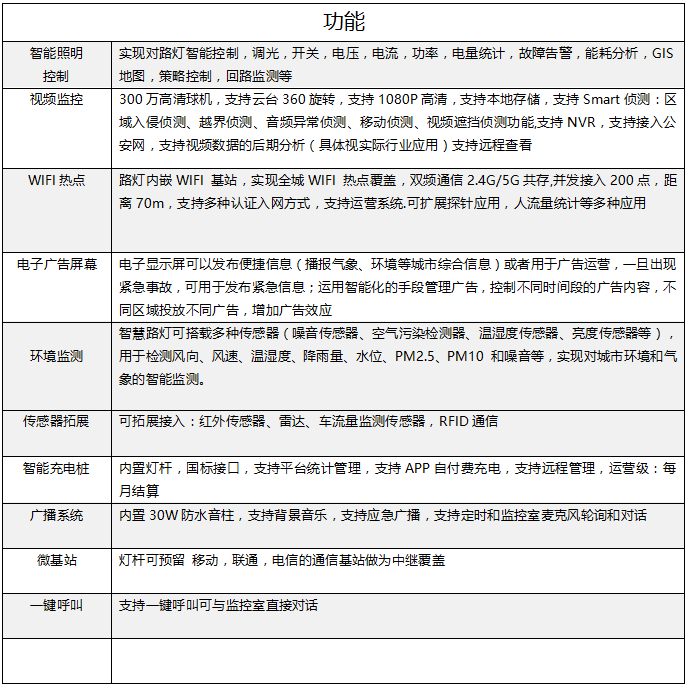 Z10-K9系列的智慧路燈-是依托智慧燈桿和LED路燈,集成WIFI基站、攝像頭、紅外線傳感器、雷達(dá)、電子顯示屏、充電樁、環(huán)境監(jiān)測(cè)傳感器等,變成一個(gè)信息載體,實(shí)現(xiàn)數(shù)據(jù)監(jiān)控、環(huán)保監(jiān)測(cè)、車輛監(jiān)控、安防監(jiān)控、燈桿屏、地下管網(wǎng)監(jiān)控、城市洪澇災(zāi)害預(yù)警、區(qū)域噪聲監(jiān)測(cè)、市民應(yīng)急報(bào)警等的綜合型智慧城市信息化管理平臺(tái).