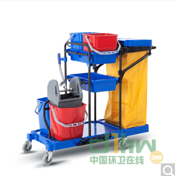 白云清潔牌垃圾桶多功能清潔車手推車服務(wù)車保潔工具車布草車賓館酒店客房服務(wù)車多層手推車?yán)嘇F08173餐車 藍(lán)色
