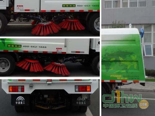 掃路車“中置四盤刷,后置吸嘴”結(jié)構(gòu)布置,副發(fā)動機驅(qū)動風(fēng)機及其工作裝置,以吸為主,洗掃結(jié)合,濕式除塵,對路面進行清掃作業(yè),采用電液操縱控制,液壓傾翻卸料,具有清掃能力強,清掃寬度大,清掃速度高,吸入粒大,可靠性高,易于操作和維護,作業(yè)效率高等特點。