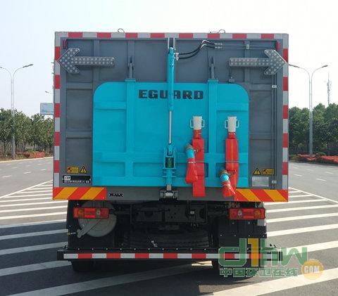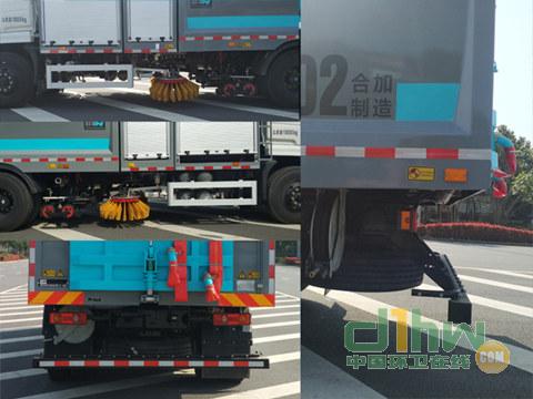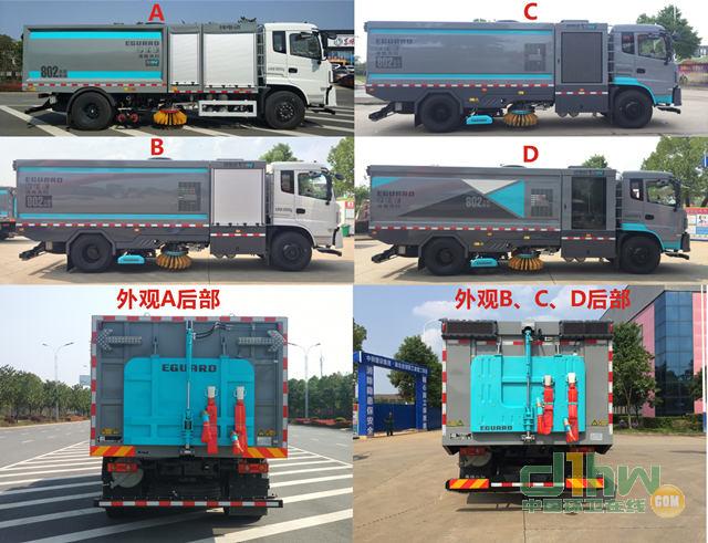 選用5100mm軸距底盤,裝有ABS,型號:CM4XL-4S/4M;生產(chǎn)廠家:廣州瑞立科密汽車電子股份有限公司.動力蓄電池種類為三元鋰蓄電池,生產(chǎn)企業(yè)為桑頓新能源科技有限公司;驅(qū)動電機類型為永磁同步電機,型號為TZ368XSYP095-1800T540B,額定功率為95kW,峰值功率為150kW,生產(chǎn)企業(yè)為湖南意譜電動系統(tǒng)有限公司;電機控制器型號為KTZ54X45S-100,生產(chǎn)企業(yè)為湖南意譜電動系統(tǒng)有限公司;該車有A、B、C、D4種外觀,外觀A時整備質(zhì)量為12250㎏,載質(zhì)量為5555㎏,離去角13;側(cè)防護材料為鋁合金,連接方式:螺栓連接,后防護材料為Q235A,連接方式:螺栓連接,斷面尺寸為120×65(mm),離地高度為410mm.外觀B、C、D時整備質(zhì)量為12800㎏,載質(zhì)量為5005㎏,離去角11;側(cè)防護由電池架下門面板及專用裝置代替,后防護材料為Q235A,連接方式:螺栓連接,斷面尺寸為150×60(mm),離地高度為350mm.產(chǎn)品技術(shù)階段:發(fā)展期;銷售區(qū)域:可全國銷售.專用裝置由清掃裝置,吸嘴與噴水裝置等組成,專用功能為道路清洗,清掃作業(yè)