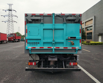 選用4200mm軸距底盤,裝有ABS,型號:DETC-ABS-4S/4M;生產(chǎn)廠家:東風(fēng)電子科技股份有限公司汽車制動系統(tǒng)公司.動力蓄電池種類為三元鋰蓄電池,生產(chǎn)企業(yè)為桑頓新能源科技有限公司,驅(qū)動電機類型為永磁同步電機,型號為TZ290XS065M0701,額定功率為65kW,峰值功率為110kW,生產(chǎn)企業(yè)為湖南意譜電動系統(tǒng)有限公司;電機控制器型號為KTZ37X40S10C,生產(chǎn)企業(yè)為湖南意譜電動系統(tǒng)有限公司;側(cè)面防護裝置材質(zhì)為鋁合金,連接方式為螺栓連接;后部防護裝置材質(zhì)為Q235A,螺栓連接,斷面尺寸為100×60(mm)離地高度為350mm.專用裝置由垃圾箱、吸嘴總成、清掃裝置、風(fēng)機等組成,對路面進行清掃、保潔等作業(yè).產(chǎn)品技術(shù)階段:發(fā)展期;銷售區(qū)域:可全國銷售.