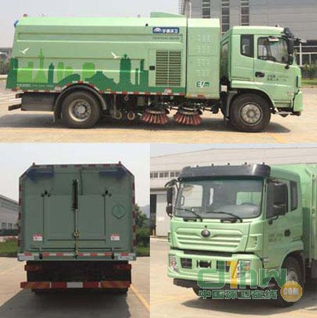 掃路車“中置四盤刷,后置吸嘴”結(jié)構布置,副發(fā)動機驅(qū)動風機及其工作裝置,以吸為主,洗掃結(jié)合,濕式除塵,對路面進行清掃作業(yè),采用電液操縱控制,液壓傾翻卸料,具有清掃能力強,清掃寬度大,清掃速度高,吸入粒大,可靠性高,易于操作和維護,作業(yè)效率高等特點。