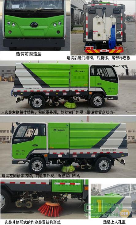 6、集掃路車和高壓清洗車功能于一體,實現(xiàn)在一次作業(yè)中完成清掃、高壓清洗和垃圾、污水的收集。