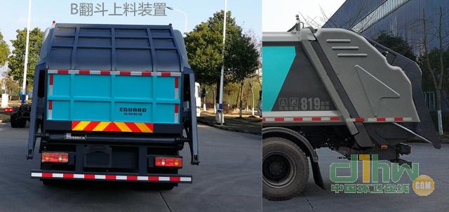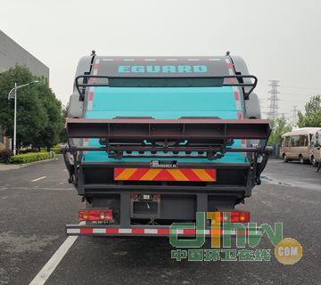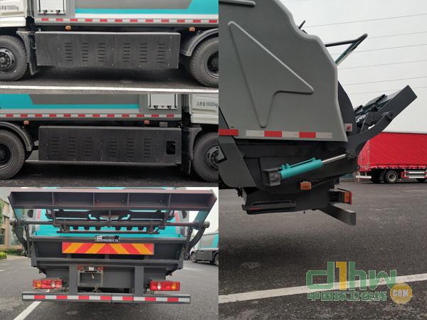 選用4500軸距底盤,裝有ABS,型號:CM4XL-4S/4M;生產(chǎn)廠家:廣州瑞立科密汽車電子股份有限公司.動力蓄電池種類為三元鋰蓄電池,生產(chǎn)企業(yè)為桑頓新能源科技有限公司;驅(qū)動電機(jī)類型為永磁同步電機(jī),型號為TZ368XSYP095-1800T540B,額定功率為95kW,峰值功率為150kW,生產(chǎn)企業(yè)為湖南意譜電動系統(tǒng)有限公司;電機(jī)控制器型號為KTZ54X45S-100,生產(chǎn)企業(yè)為湖南意譜電動系統(tǒng)有限公司;側(cè)防護(hù)由電池罩代替,材料為Q235A,連接方式:螺栓連接,后防護(hù)材料為Q235A,連接方式:焊接連接,斷面尺寸為120×60(mm),離地高度為480mm.裝有帶衛(wèi)星定位功能的行駛記錄儀;該車后部有2種配置:A(翻桶上料裝置),B(翻斗上料裝置);配置A時,整車長9190mm,后懸2790mm,后伸420mm,載質(zhì)量為6705kg,整備質(zhì)量為11100kg;配置B時,整車長8970mm,后懸2700mm,后伸290mm,載質(zhì)量為6455kg,整備質(zhì)量為11350kg;產(chǎn)品技術(shù)階段:發(fā)展期;銷售區(qū)域:可全國銷售.專用裝置由垃圾箱、液壓機(jī)構(gòu)、填裝器等組成,專用功能:將垃圾自行壓實裝入,轉(zhuǎn)運和卸料作業(yè).