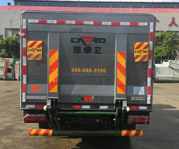 該車通過垃圾箱、起重尾板及液壓裝置,用于桶裝垃圾收集轉(zhuǎn)運(yùn)作業(yè)。尾板收起狀態(tài)的水平長度200mm。側(cè)防護(hù)材料Q235B,螺栓連接;車輛尾部裝有液壓尾板,帶有截面為直徑115mm的圓管,充當(dāng)后防護(hù)裝置,離地高度360mm。安裝具有衛(wèi)星定位功能的行駛記錄儀。隨底盤安裝的ABS系統(tǒng)生產(chǎn)廠家/型號:廣州瑞立科密汽車電子股份有限公司/CM4XL-4S/4M。該車電池種類/ 型號/生產(chǎn)企業(yè): 磷酸鐵鋰電池/DAL0H2/寧德時(shí)代新能源科技股份有限公司;驅(qū)動電機(jī)類型/型號/生產(chǎn)企業(yè):永磁同步電機(jī)/GC-TM750-06/蘇州綠控傳動科技有限公司,電機(jī)額定功率為75kW,峰值功率為120kW,電機(jī)控制器型號/生產(chǎn)企業(yè):GC-CU750-06/蘇州綠控傳動科技有限公司;整車控制器型號/生產(chǎn)企業(yè):EVCU/蘇州綠控傳動科技有限公司??稍谌珖N售。