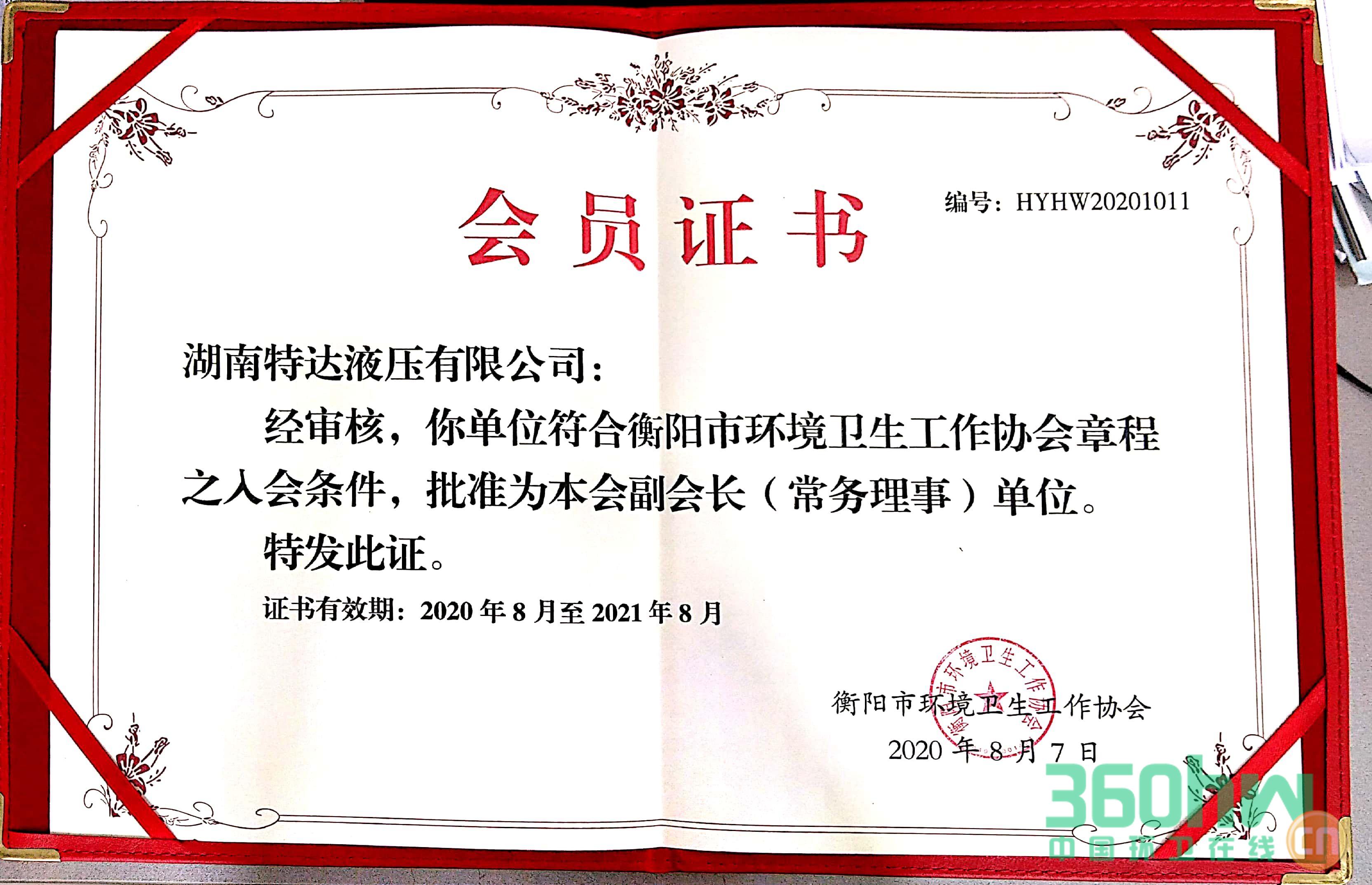 環(huán)衛(wèi)工作協(xié)會(huì)會(huì)員證書